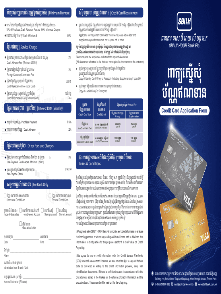 | Minimum Payment 10% 100% 10% of Purchase, Cash Advance, Fee and 100% of Interest Charges / Cash Withdrawal80% | Service Charge