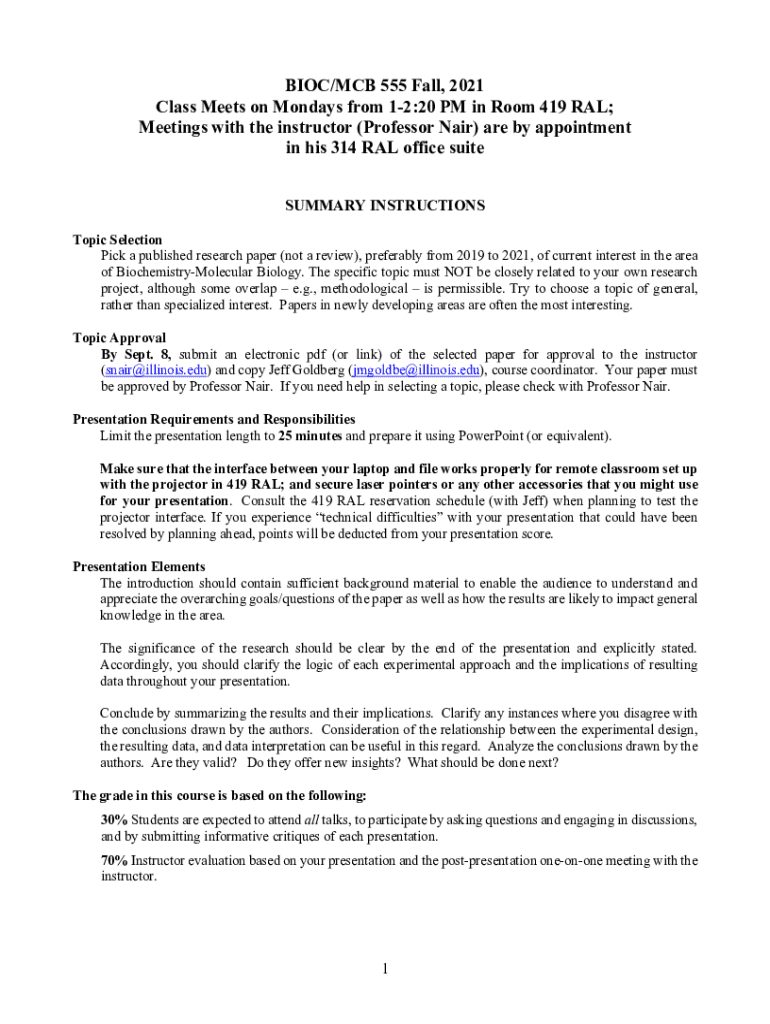 Get the free BIOC/MCB 555 Fall, 2021 Class Meets on Mondays from 1-2 ...