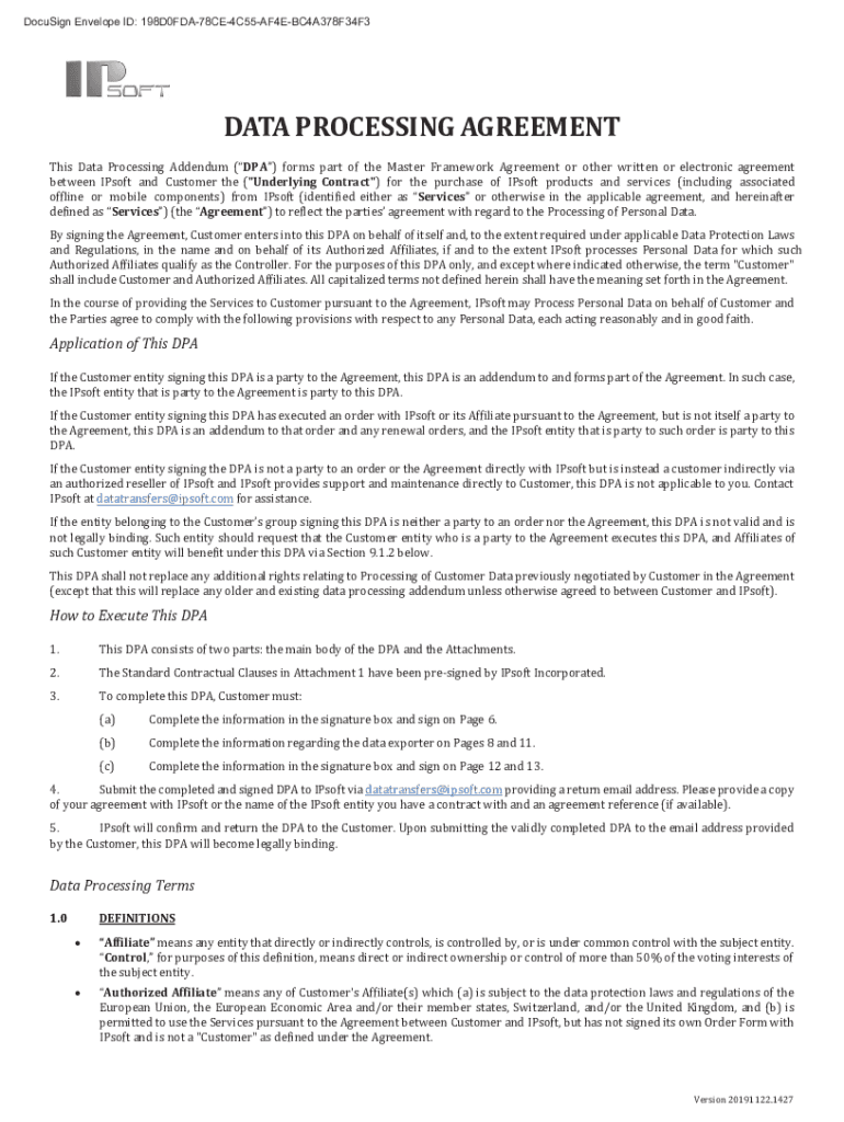 Editing ipsoftcustomerdata protection agreement 20180530pdf online
