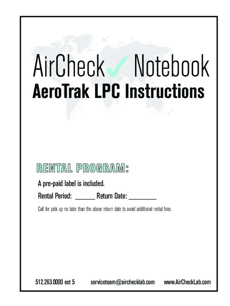 Check Notebook Aerogram LPC InstructionsRENTAL PROGRAM: A prepaid label is included. Rental Period: ___ Return Date: ___ Call for pickup no later than the above return date to avoid additional rental