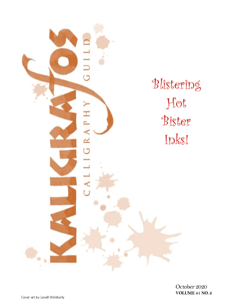 Blistering Hot Sister The April Inks! Meeting is CancelledOctober 2020 VOLUME 41 NO. 2 Cover art by Janell WimberlyPresidents Letter Hello everyone! We Ink em Up! A special thank you to all those