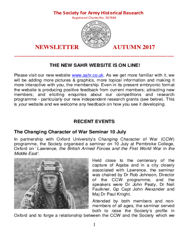 The Society for Army Historical Research Registered Charity No. 247844NEWSLETTER AUTUMN 2017 ___ THE NEW SAAR WEBSITE IS ON LINE! Please visit our new website www.sahr.co.uk. As we get more familiar