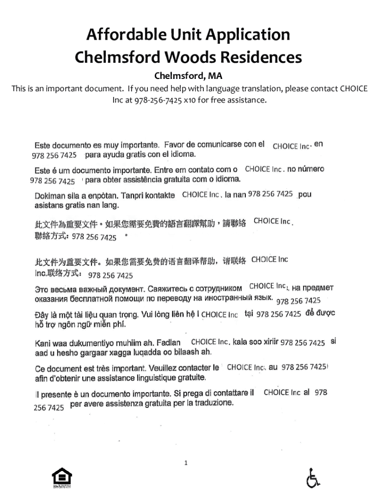 Affordable Unit Application Chelmsford Woods Residences Chelmsford, MA This is an important document. If you need help with language translation, please contact CHOICE Inc at 9782567425 x10 for free