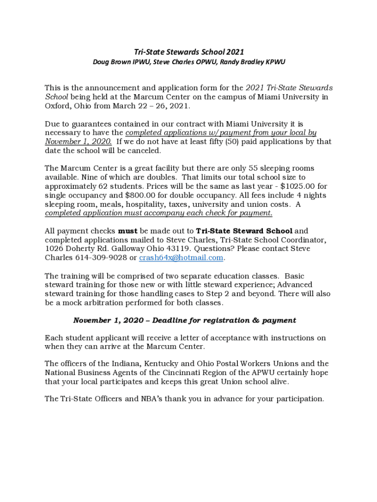 Aristate Stewards School 2021 Doug Brown IP WU, Steve Charles OP WU, Randy Bradley KPU This is the announcement and application form for the 2021 Aristate Stewards School being held at the Marcus
