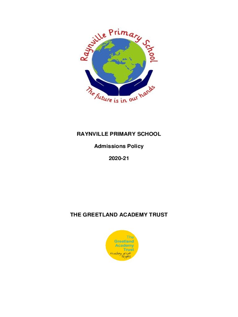 DANVILLE PRIMARY SCHOOL Admissions Policy 202021THE GREENLAND ACADEMY TRUSTAdmission Policy for Danville Primary School for admission in September 2021 The Trust Board is the Admissions Authority