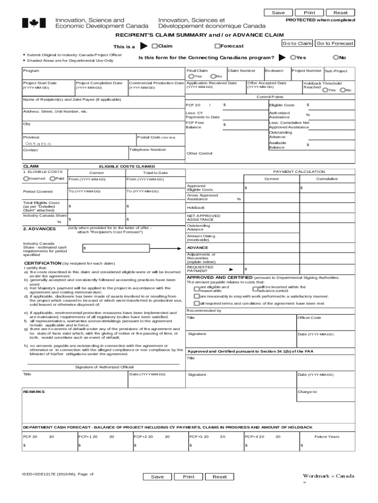 Get the free ISED-ISDE1217E RECIPIENT'S CLAIM SUMMARY and / or ADVANCE CLAIM. RECIPIENT'S CLAIM S...