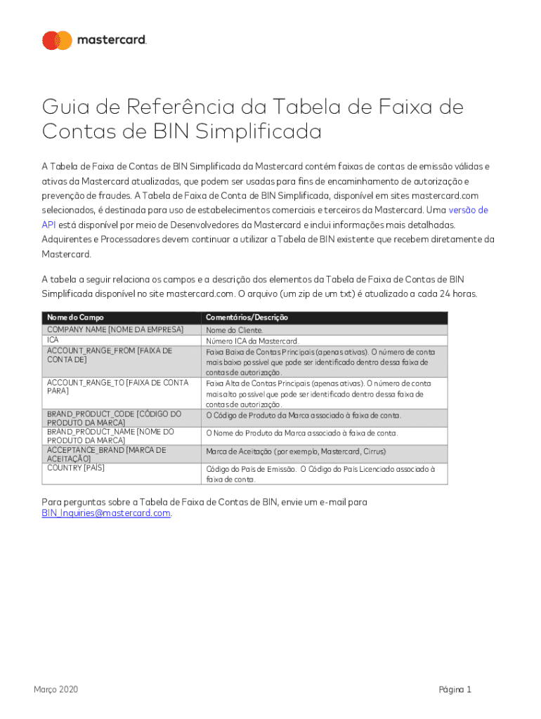 A Tabla de Faixa de Contas de BIN Simplified the Mastercard cont fields DE congas DE emission alias e