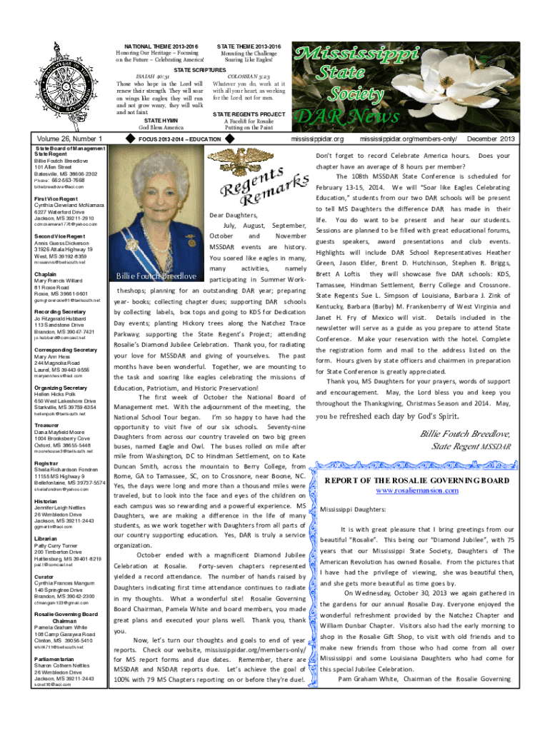 Get the free Billie Foutch Breedlove, State Regent MSSDAR