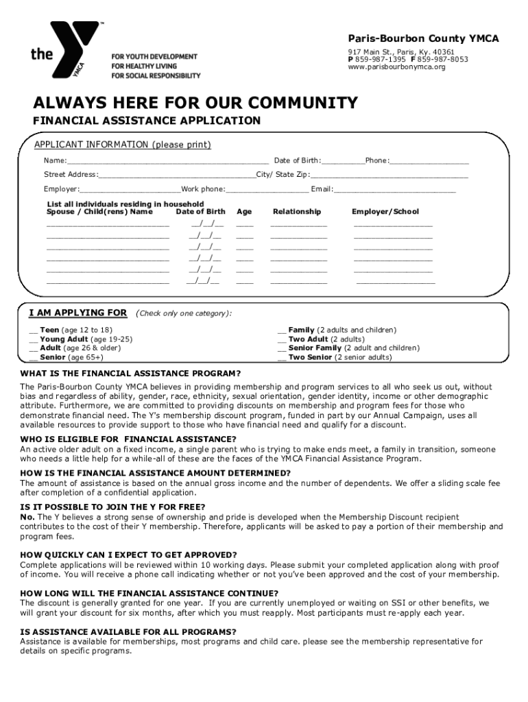 Get the free financial assistance application - Paris-Bourbon County YMCA