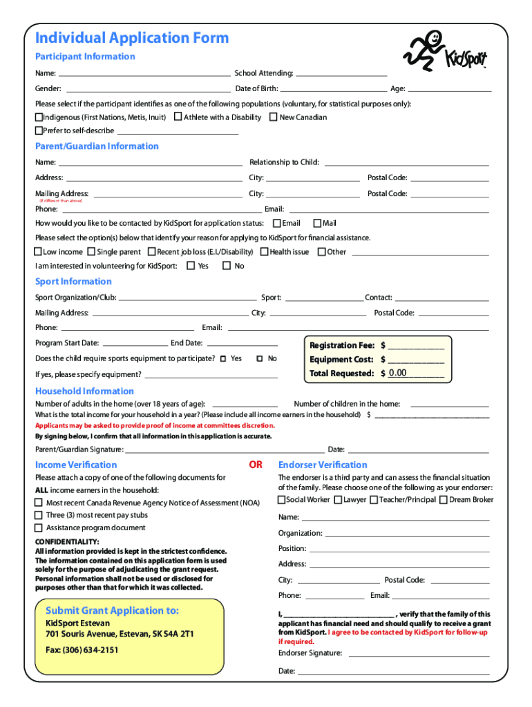 Identify the specific amateur sport program you are interested in filling out.