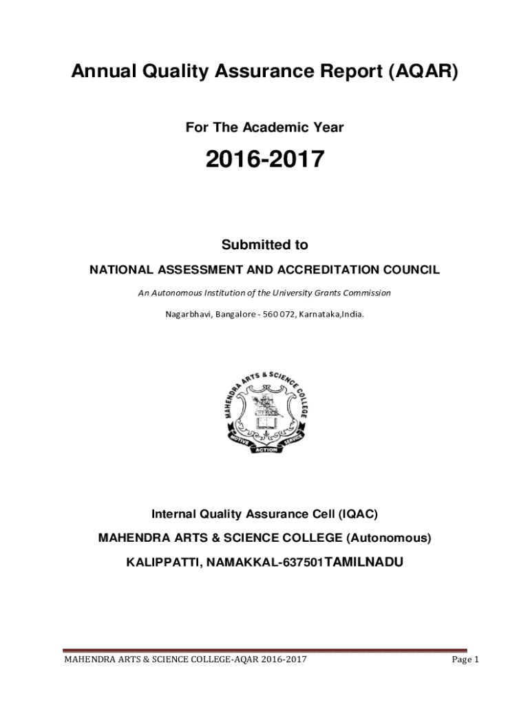 Annual Quality Assurance Report (AGAR) For The Academic Year20162017Submitted to NATIONAL ASSESSMENT AND ACCREDITATION COUNCIL An Autonomous Institution of the University Grants Commission Nagarbhavi,