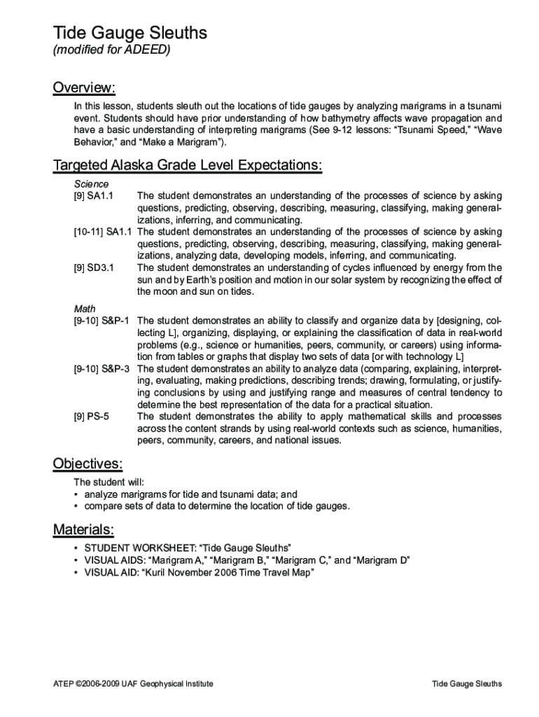 Tide Gauge Sleuths (modified for ADDED)Overview: In this lesson, students sleuth out the locations of tide gauges by analyzing programs in a tsunami event. Students should have prior understanding