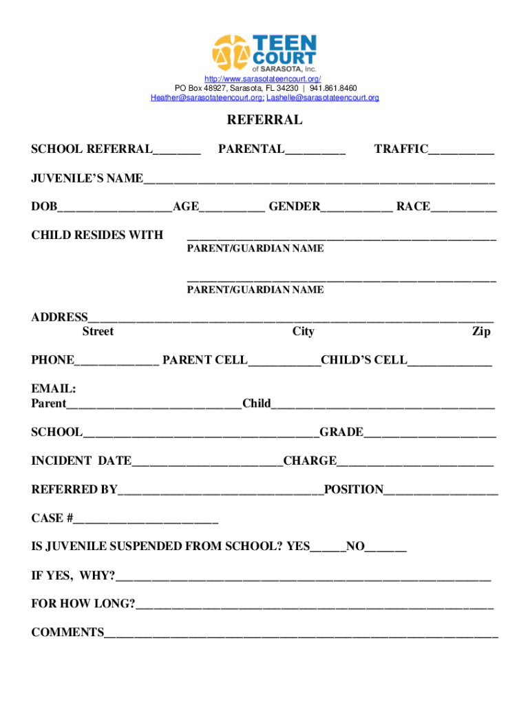 Get the free SCHOOL REFERRAL FORM - Sarasota Teen Court