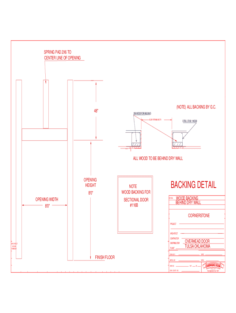 SPRING PAD 2×6 TO CENTER LINE OF OPENING48\'\'(NOTE) ALL BACKING BY G.C. 2×6 WOOD FOR BACKING CLEAR OPENING WIDTHSTEEL STUD / WOODALL WOOD TO BE BEHIND DRY WALLOPING HEIGHT 8\'0\'\' OPENING WIDTH
