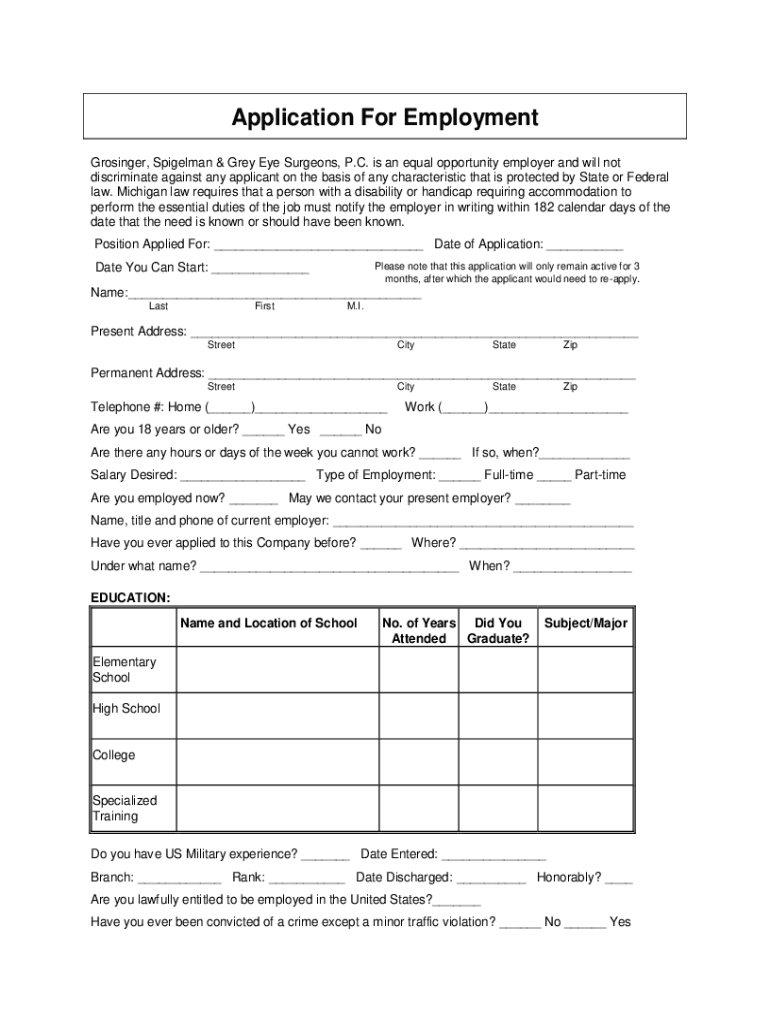 Application For Employment Grainger, Spiegelman & Grey Eye Surgeons, P.C. is an equal opportunity employer and will not discriminate against any applicant on the basis of any characteristic that is