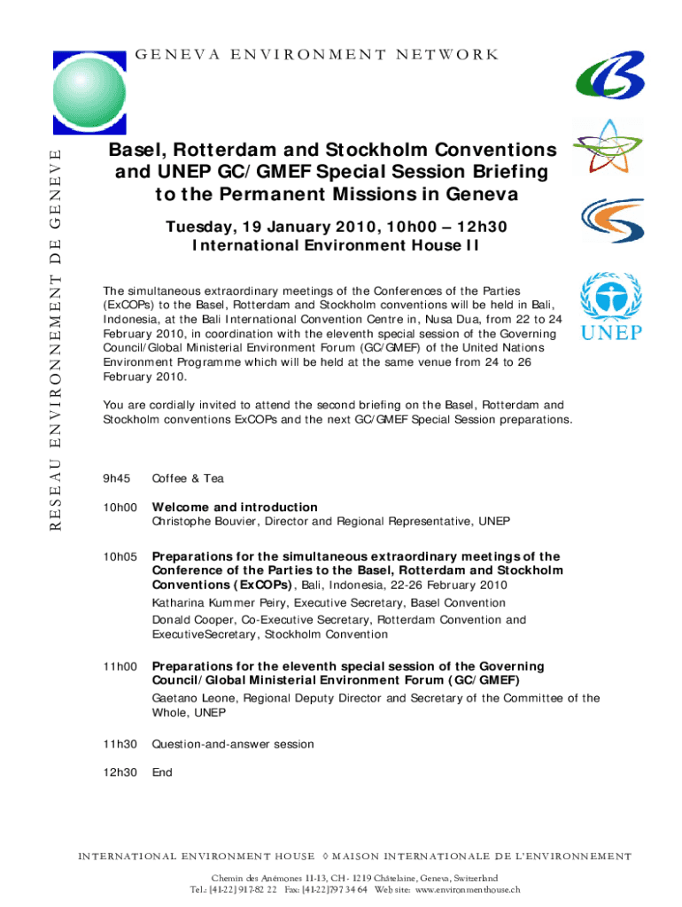ROSEAU ENVIRONMENT DE GENEVEGENEVA ENVIRONMENT NETWORK Basel, Rotterdam and Stockholm Conventions and NEP GC/GEF Special Session Briefing to the Permanent Missions in Geneva Tuesday, 19 January 2010,
