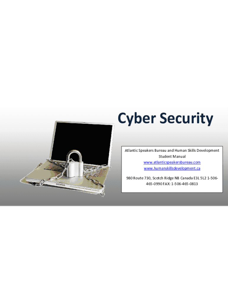 Cybersecurity Atlantic Speakers Bureau and Human Skills Development Student Manual www.atlanticspeakersbureau.com www.humanskillsdevelopment.ca 980 Route 730, Scotch Ridge NB Canada E3L 5L2 15064650990