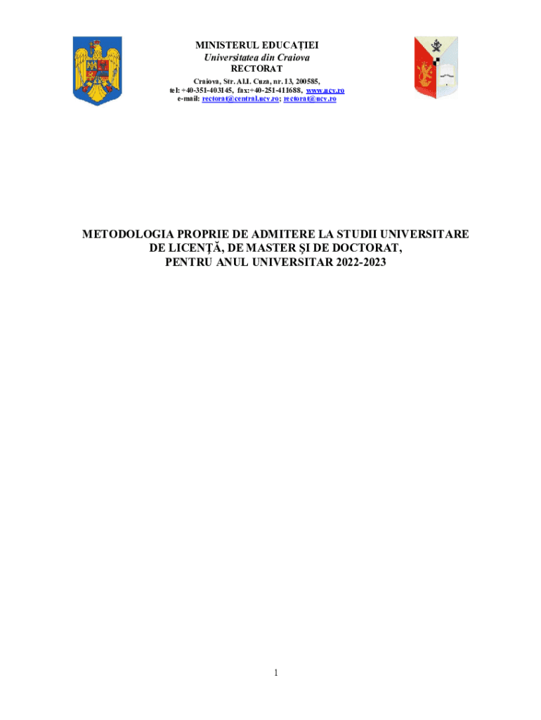 MINISTER UL EDUCATED Universities din Crayola RECTORATCraiova, STR. Al. I. Cuba, NR. 13, 200585, tel: +40351403145, fax:+40251411688, www.ucv.ro email: rectorat@central.ucv.ro; rectorat@ucv.roMETODOLOGIA