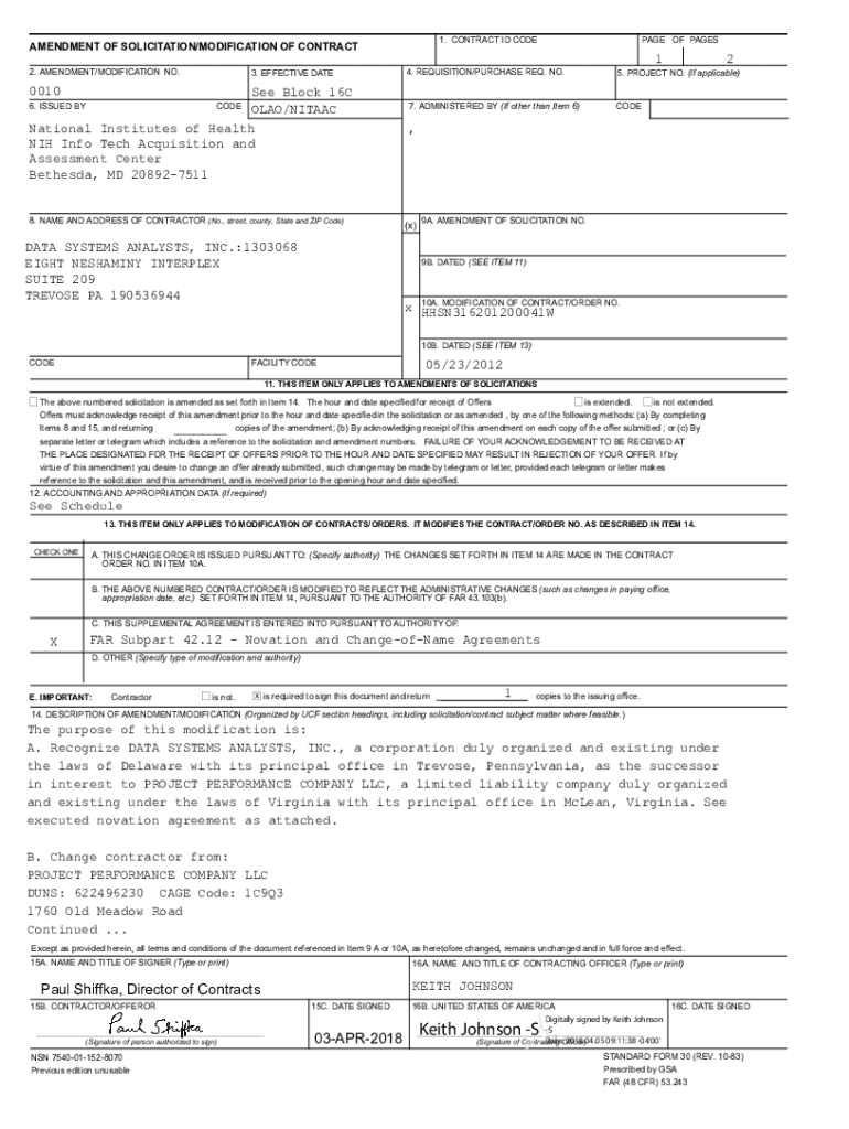 2. AMENDMENT/MODIFICATION NO.3. EFFECTIVE AVERAGE OF PAGES1. CONTRACT ID CODEPENDENT OF SOLICITATION/MODIFICATION OF CONTRACT1 4. REQUISITION/PURCHASE REQ. NO.25. PROJECT NO. (If applicable)0010See