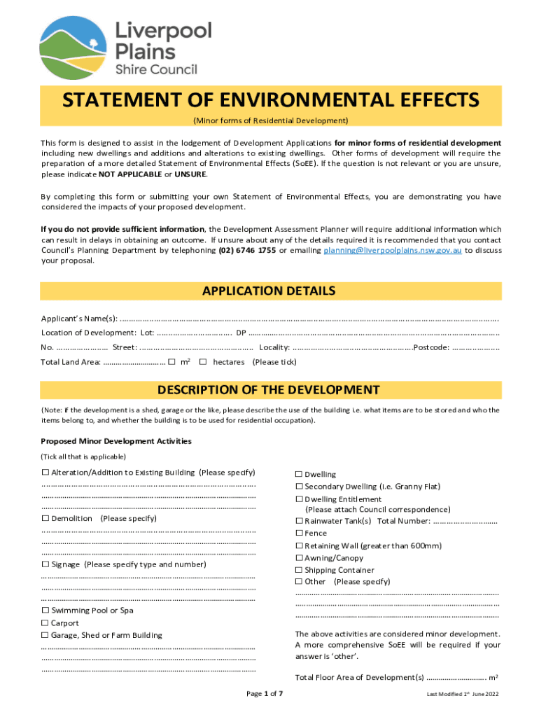 Get the free Statement of Environmental Effects (SEE) Form for Minor ...