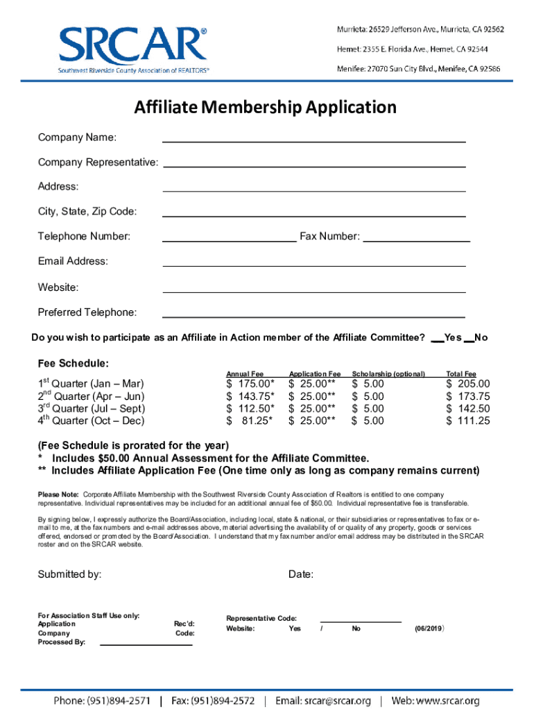 AffiliateMembershipApplication Company Name: Company Representative: Address:___City, State, Zip Code: Telephone Number:Fax Number: Email Address:___Website:___Preferred Telephone:___ Do you wish