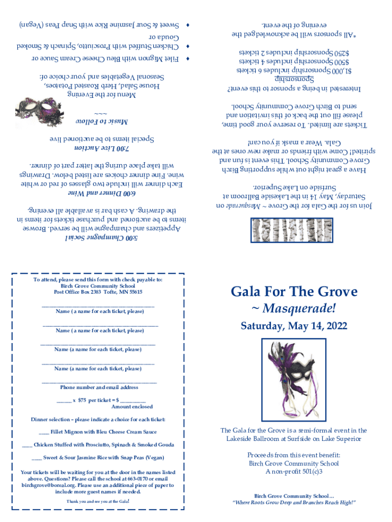 Tickets are limited. To reserve your good time, please fill out the back of this invitation and send to Birch Grove Community School. Have a great night out while supporting Birch Grove Community