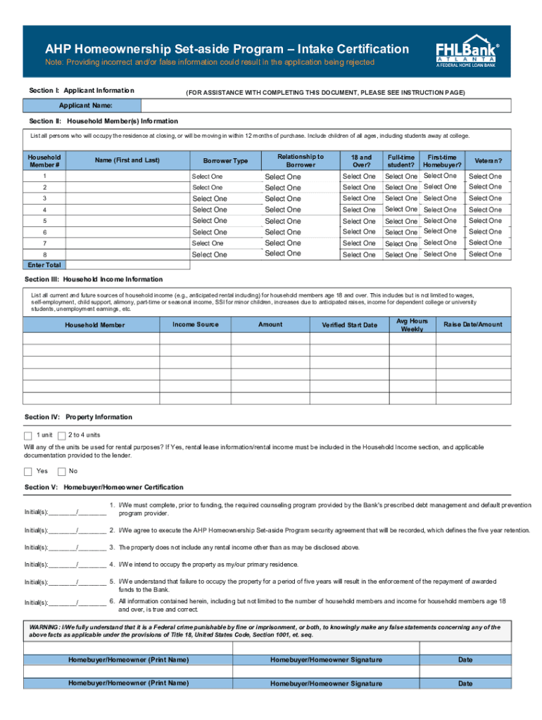 HP Homeownership Seaside Program Intake Certification These instructions are being provided to assist with the accurate completion of the Intake Certification. PLEASE READ THOROUGHLY AND CAREFULLY.