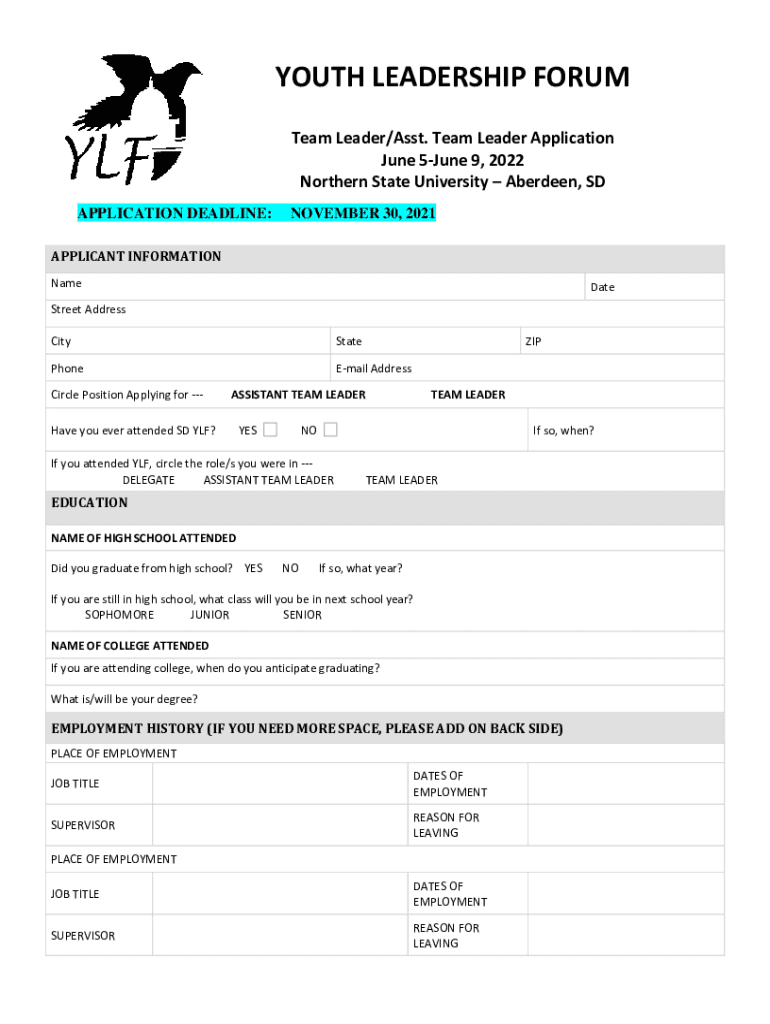 APPLICATION DEADLINE:NOVEMBER 30, 2021APPLICANT INFORMATION