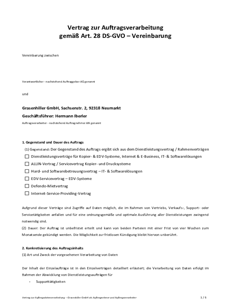 Holen Sie sich kostenlos Vertrag zur Auftragsverarbeitung gem Art. 28 DS-GVO