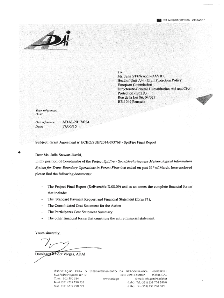 Ref. Ares(201 7)3116392 21 /06/2017To Ms. Julia STEWART), Head of Unit A/4 Civil Protection Policy European Commission DirectorateGeneral Humanitarian Aid and Civil Protection ECHO Rue de la Loi 86,