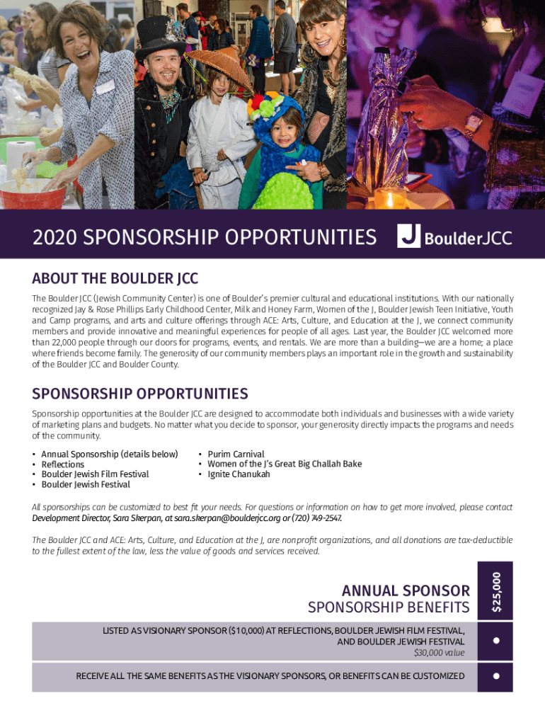 2020 SPONSORSHIP OPPORTUNITIESBoulderJCCABOUT THE BOULDER JCC The Boulder JCC (Jewish Community Center) is one of Boulders premier cultural and educational institutions. With our nationally recognized