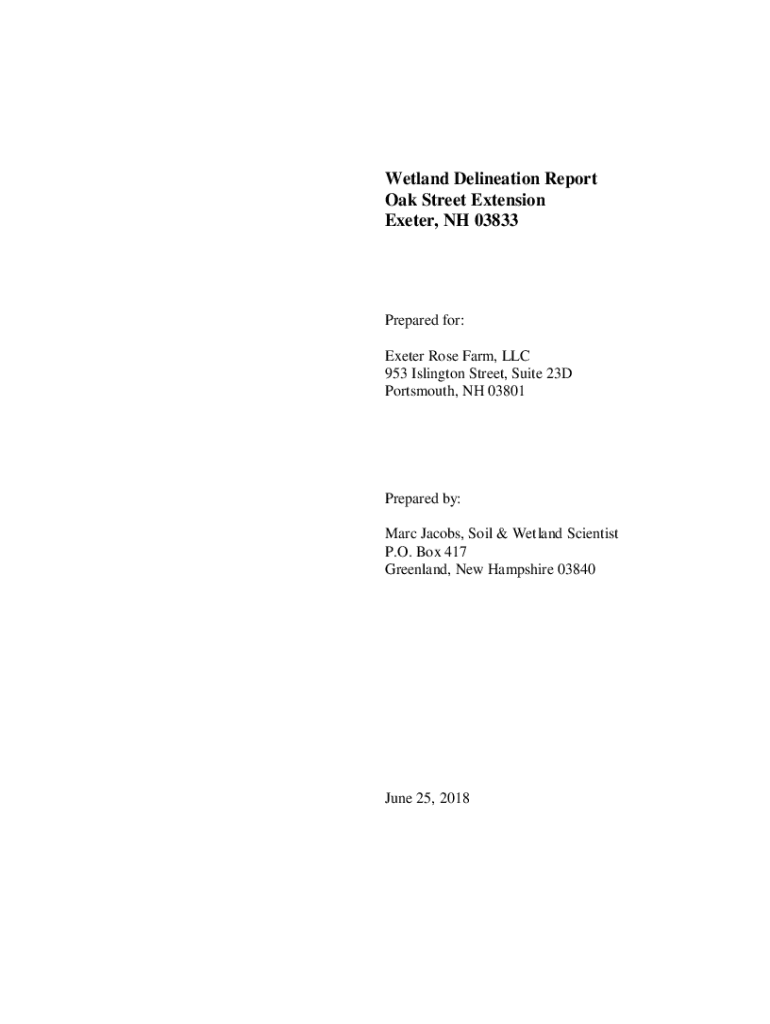 Wetland Delineation Report Oak Street Extension Peter, NH 03833Prepared for: Peter Rose Farm, LLC 953 Arlington Street, Suite 23D Portsmouth, NH 03801Prepared by: Marc Jacobs, Soil & Wetland Scientist