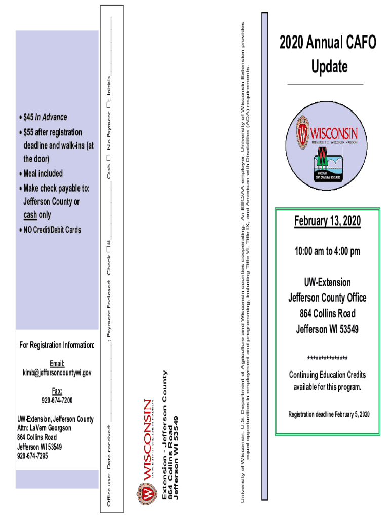 Fax: 9206747200 Extension, Jefferson County Attn: Lavern Georgian 864 Collins Road Jefferson WI 53549 9206747295#___ Cash No Payment ; Initials___University of Wisconsin, U.S. Department of Agriculture