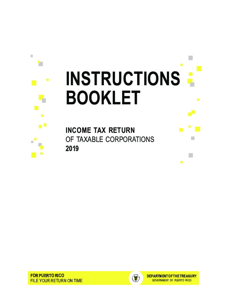 2019INSTRUCTIONS BOOKLET INCOME TAX RETURN OF TAXABLE CORPORATIONS 2019FOR PUERTO RICO FILE YOUR RETURN ON TIMEDEPARTMENT OF THE TREASURY GOVERNMENT OF PUERTO RICO12019TABLE OF CONTENT Page Taxpayers