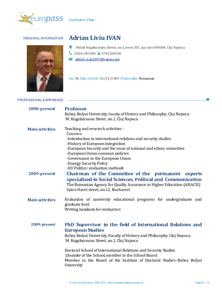 Get the free Adrian Liviu IVAN - Europass CV - CNATDCU