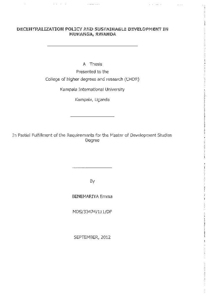 DECENTRALIZATION POLICY AND SUSTAINABLE DEVELOPMENT IN MANGA, RWANDA ThesisPresented to the College of higher degrees and research (CDR)Kampala International University Kampala, Ugandan Partial Fulfillment