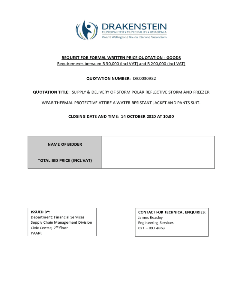 QUOTATION TITLE: SUPPLY & DELIVERY OF STORM POLAR REFLECTIVE