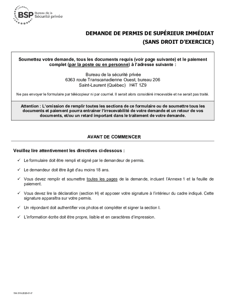 DEMAND DE PERMIT DE SPRIER IMMEDIATE (SANS DROID EXERCISE) Roulette vote demand, tousles documents renews (void page private) et LE pavement complete (par la post of en personnel) lacrosse private