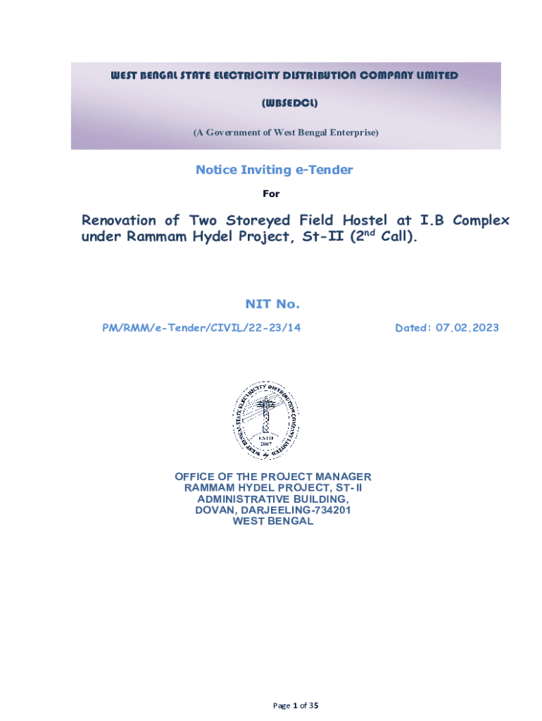 Get the free Notice Inviting e-Tender - WBSEDCL