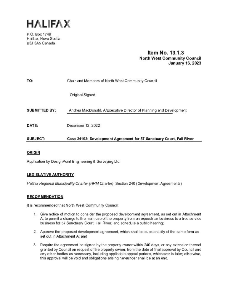 P.O. Box 1749 Halifax, Nova Scotia B3J 3A5 Canaanite No. 13.1.3North West Community Council January 16, 2023TO:Chair and Members of North West Community Council Original SignedSUBMITTED BY:Andrea