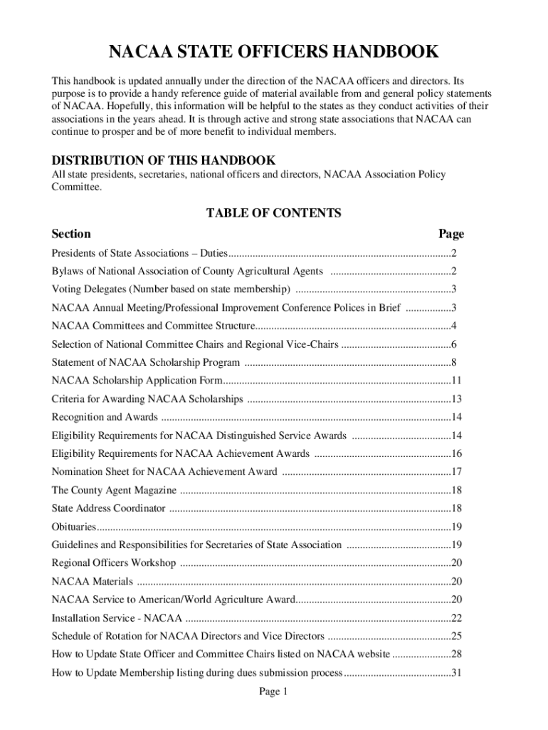 The nacaastate officers handbook contains guidelines and information for state officers.