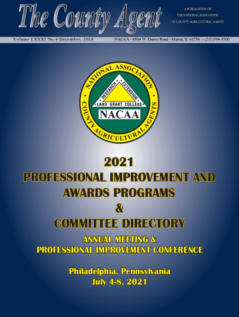 A PUBLICATION OF THE NATIONAL ASSOCIATION OF COUNTY AGRICULTURAL AGENTSVolume XXXI No.4 December, 2020NACAA 6584 W. Duroc Road Maria, IL 61756 (217)79437002021 PROFESSIONAL IMPROVEMENT AND AWARDS