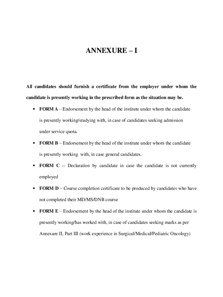 Appendix All candidates should furnish a certificate from the employer under whom the candidate is presently working in the prescribed form as the situation may be. FORM A Endorsement by the head
