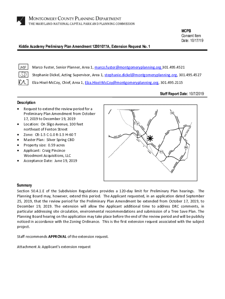 MONTGOMERY COUNTY PLANNING DEPARTMENT THE MARYLANDNATIONAL CAPITAL PARK AND PLANNING COMMISSIONMCPB Consent Item Date: 10/17/19 Kiddie Academy Preliminary Plan Amendment 12001077A, Extension Request