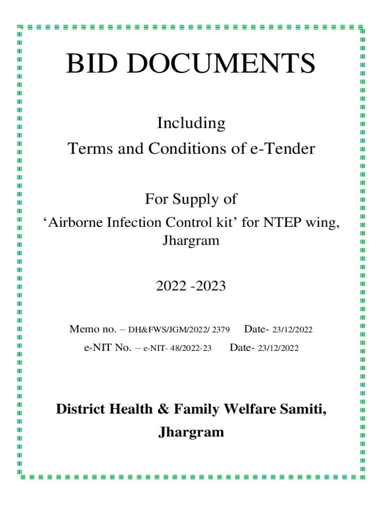 BID DOCUMENTS Including Terms and Conditions of tender For Supply of Airborne Infection Control kit for STEP wing, Diagram 2022 2023 Memo no. DHOWS/JIM/2022/ 2379 ENIT No. ENIT 48/202223Date 23/12/2022Date