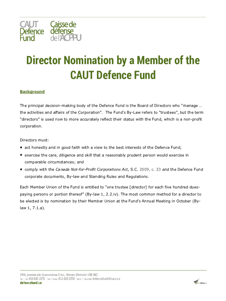 Get the free Director Nomination by a Member of the CAUT Defence Fund - defencefund caut