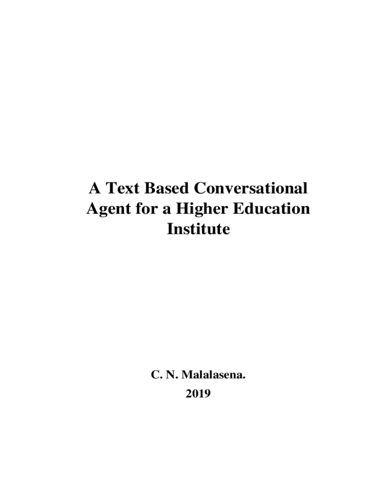 A Text Based Conversational Agent for a Higher Education Institute. N. Malalasena. 2019A Text Based Conversational Agent for a Higher Education Institute A dissertation submitted for the Degree of