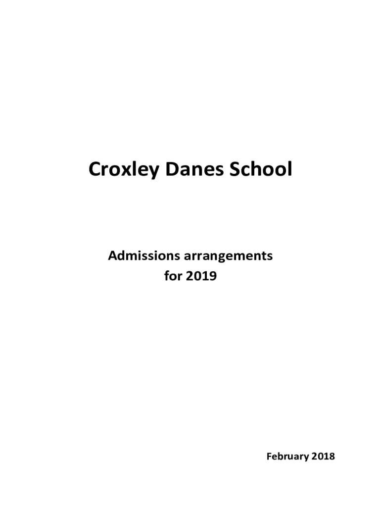 Crowley Danes SchoolAdmissions arrangements for 2019February 2018Contents1. Admissions arrangements for Crowley Danes School for 201932. Application Form for 2019 secondary transfer to Crowley Danes