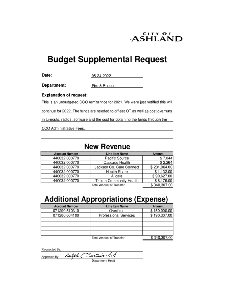Council Business Meeting June 7, 2022, Agenda Item2021/23 Supplement Budget & ResolutionFromAlison ChanContactAlison.Chan@ashland.or.us (541) 5522003Interim Finance DirectorSUMMARY During the course