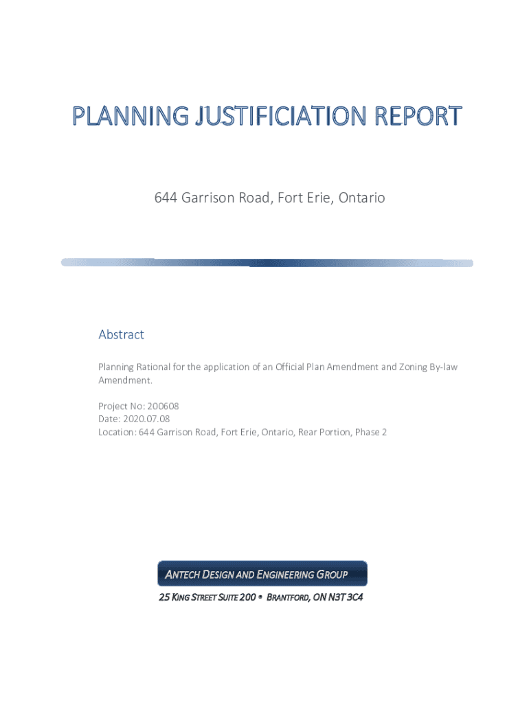 PLANNING JUSTIFICATION REPORT 644 Garrison Road, Fort Erie, OntarioAbstract Planning Rational for the application of an Official Plan Amendment and Zoning Bylaw Amendment. Project No: 200608 Date: